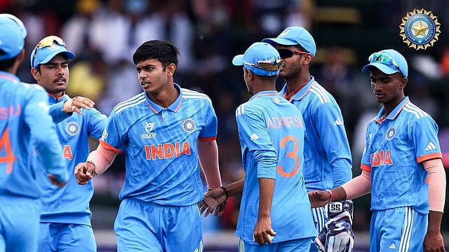 ഇന്ത്യക്കായി രാജ് ലിംബാനി മൂന്ന് വിക്കറ്റുകള് വീഴ്ത്തി. നമാന് തിവാരി രണ്ട് വിക്കറ്റുകള് സ്വന്തമാക്കി. സൗമി പാണ്ഡെ, മുഷീര് ഖാന് എന്നിവര് ഓരോ വിക്കറ്റെടുത്തു.