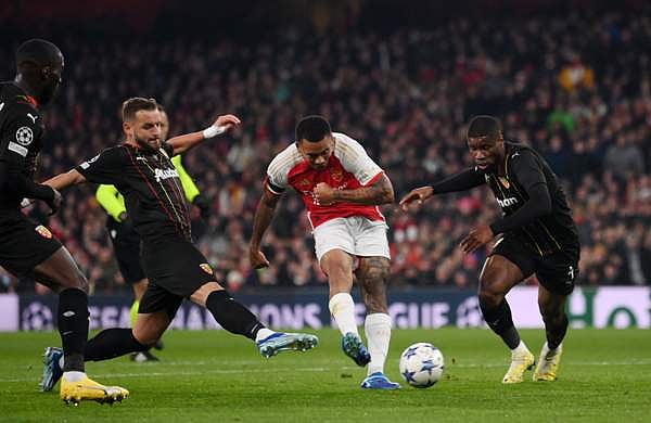 ആദ്യ പകുതിയില് തന്നെ അഞ്ച് ഗോളുകള് പീരങ്കിപ്പട ലെന്സിന്റെ വലയില് നിക്ഷേപിച്ചു. 13ാം മിനിറ്റില് കെയ് ഹവേര്ട്സാണ് ഗോളടി തുടങ്ങിയത്. 21ാം മിനിറ്റില് ഗബ്രിയേല് ജെസൂസ്, 23ാം മിനിറ്റില് ബുകായോ സക, 27ാം മിനിറ്റില് ഗബ്രിയേല് മാര്ടിനെല്ലി, ആദ്യ പകുതിയുടെ ഇഞ്ച്വറി ടൈമില് മാര്ട്ടിന് ഒഡേഗാഡ്, ഒടുവില് 89ാം മിനിറ്റില് ജോര്ജീഞ്ഞോയുടെ പെനാല്റ്റി ഗോള്. രണ്ടാം പകുതിയില് ആഴ്സണലിനെ കൂടുതല് ഗോളടിക്കാന് സമ്മതിക്കാതെ പ്രതിരോധിക്കാന് സാധിച്ചതു മാത്രം ലെന്സിനു ഓര്ക്കാനുണ്ട്. ജയത്തോടെ ആഴ്സണൽ പ്രീ ക്വാർട്ടറിലേക്ക് മുന്നേറി.