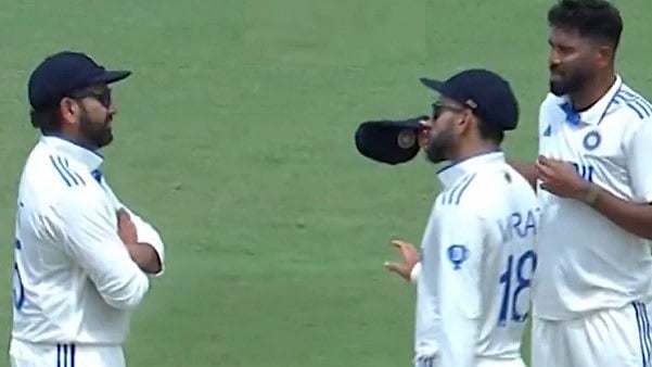 അതിനിടെ കോഹ്ലി രോഹിതിനും സിറാജിനും അരികിലേക്ക് ഓടിയെത്തി രോഹിതിനെ തിരുത്തുന്നു. സിറാജ് ഓവര് ദി വിക്കറ്റ് തന്നെ എറിയട്ടെ എന്നു കോഹ്ലി പറയുന്നു. അങ്ങനെ പന്തെറിയുമ്പോള് കൂടുതല് പുറത്താകാനുള്ള സാധ്യത നിലനില്ക്കുന്നു എന്നതായിരുന്നു കോഹ്ലി സമര്ഥിക്കാന് ശ്രമിച്ചത്.