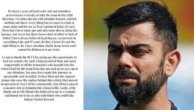 ടി20, ഏകദിന ക്യാപ്റ്റൻസി സ്ഥാനങ്ങൾ ഒഴിഞ്ഞതിന് പിന്നാലെ ടെസ്റ്റ് ടീം ക്യാപ്റ്റൻ സ്ഥാനത്തുനിന്നും രാജിവച്ചിരിക്കുകയാണ് വിരാട് കോഹ്ലി.  ട്വിറ്ററിലൂടെയാണ് താരം രാജി അറിയിച്ചത്.