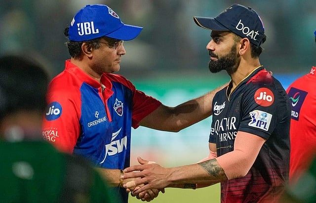 ന്യൂഡൽഹി: റോയൽ ചലഞ്ചേഴ്സ് ബാംഗ്ലൂരും ഡൽഹി ക്യാപിറ്റൽസും തമ്മിലുള്ള പോരാട്ടത്തിന് പിന്നാലെ ശ്രദ്ധാ കേന്ദ്രങ്ങളായത് വിരാട് കോഹ്ലിയും ഡൽഹി ടീം ഡയറക്ടർ സൗരവ് ഗാംഗുലിയുമായിരുന്നു. മത്സര ശേഷം ഇരുവരും ഹസ്തദാനം നടത്തിയതാണ് ആരാധകരിൽ കൗതുകമുണ്ടാക്കിയത്.