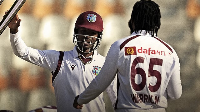 ഒന്നാം ഇന്നിംഗ്സില് 163 റണ്സിന് പുറത്തായ വെസ്റ്റ് ഇന്ഡീസ് പാകിസ്ഥാന് തക്കമറുപടി നല്കുന്നതാണ് ബൗളിങ്ങില് കണ്ടത്. പാകിസ്ഥാന്റെ ഒന്നാം ഇന്നിംഗ്സ് 154 റണ്സിന് അവസാനിച്ചു. ഒന്നാം ഇന്നിംഗ്സില് 9 റണ്സിന്റെ ലീഡുമായി രണ്ടാം ഇന്നിംഗ്സ് ആരംഭിച്ച വെസ്റ്റ് ഇന്ഡീസ് ക്യാപ്റ്റന് ക്രെയ്ഗ് ബ്രാത് വെയ്റ്റിന്റെ അര്ധ ശതകത്തിന്റെ കരുത്തില് 244 റണ്സ് നേടി. 254 റണ്സ് വിജയലക്ഷ്യവുമായി ബാറ്റിങ്ങിന് ഇറങ്ങിയ പാകിസ്ഥാന് വെസ്റ്റ് ഇന്ഡീസ് സ്പിന്നര്മാര്ക്ക് മുന്നില് പിടിച്ചുനില്ക്കാന് കഴിയാതെ കുറഞ്ഞ സ്കോറില് കൂടാരം കയറുന്നതാണ് പിന്നീട് കണ്ടത്.