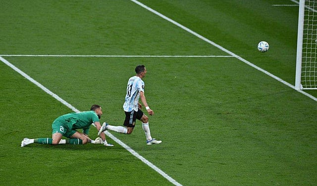 കില്ലെനിയേയും വെട്ടിച്ച് പന്ത് ചിപ്പ് ചെയ്ത് ഡൊണാരുമയ്ക്ക് മുകളിലൂടെ വലയിലെത്തിച്ചാണ് ഡി മരിയ ആദ്യ പകുതിയില് അര്ജന്റീനയുടെ ലീഡ് ഉയര്ത്തിയത്. 54 പാസുകളാണ് ഡി മരിയയില് നിന്ന് വന്നത്. പാസ് കൃത്യത 83 ശതമാനം. രണ്ട് ചാന്സുകള് സൃഷ്ടിച്ചപ്പോള് രണ്ട് വട്ടം ഡ്രിബിള് ചെയ്ത് മുന്നേറി.