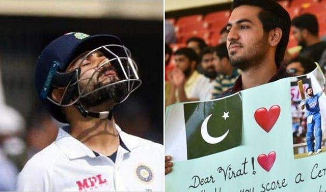 പാക് മാധ്യമപ്രവര്ത്തകനായ സജ് സാദിഖ് പാക് ആരാധകന്റെ ചിത്രം പങ്കുവെച്ചതിന് പിന്നാലെ സമൂഹമാധ്യമങ്ങളില് ഇത് വൈറലായി മാറി. ഇത് ആദ്യമായല്ല കോഹ് ലിയോടുള്ള ഇഷ്ടം പാക് ആരാധകര് പ്രകടിപ്പിക്കുന്നത്. റാവല്പിണ്ടിയില് നടന്ന ആദ്യ ടെസ്റ്റിന് ഇടയില് വന്ന ഒരു പാക് ആരാധകന്റെ ബാനറില് കുറിച്ചിരുന്നത് ഇങ്ങനെ, നിങ്ങളുടെ 71ാം സെഞ്ചുറി പാക് മണ്ണില് വെച്ച് നേടുന്നത് കാണാന് ആഗ്രഹിക്കുന്നു...