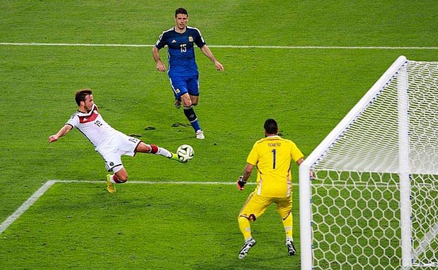 2014ലെ ലോകകപ്പ് ഫൈനലിൽ അർജന്റീനയ്ക്കെതിരെ മരിയോ ​ഗോട്സെ ​ഗോൾ നേടുന്നു/ ട്വിറ്റർ