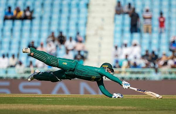 അർധ സെഞ്ച്വറിയുമായി ക്വിന്റൻ ഡി കോക്ക് ബാറ്റിങ് തുടരുന്നു. ക്വിന്റൻ ഡി കോക്ക് 7 ഫോറും 4 സിക്സും പറത്തി.