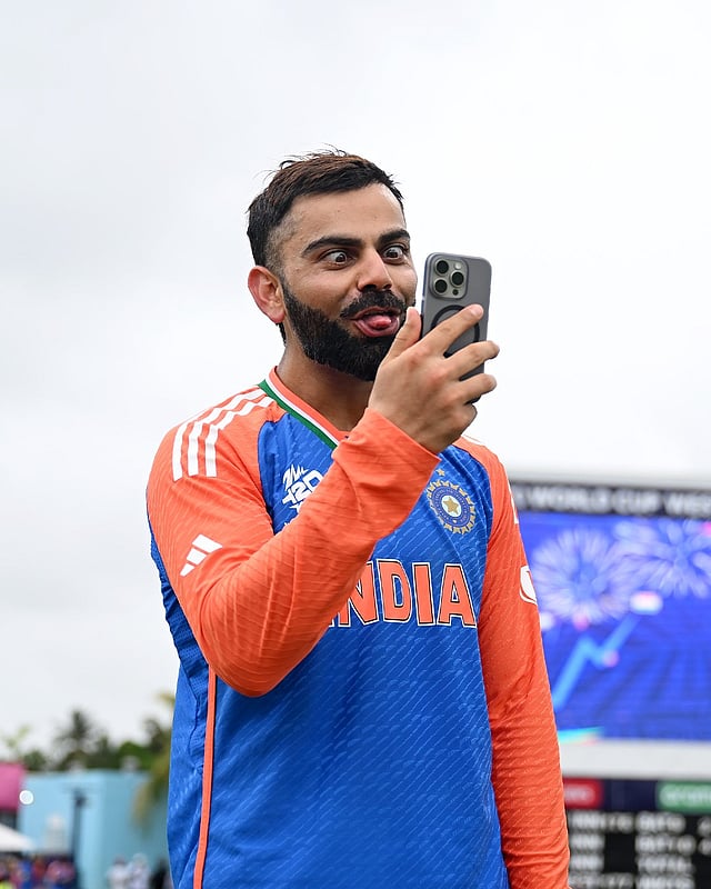 ബാര്ബഡോസിലെ ഫൈനല് ജയത്തിനു പിന്നാലെ വീട്ടിലേക്കു വിഡിയോ കോള് വിളിച്ചു സംസാരിക്കുന്ന വിരാട് കോഹ് ലിയുടെ ചിത്രങ്ങള് വൈറല്