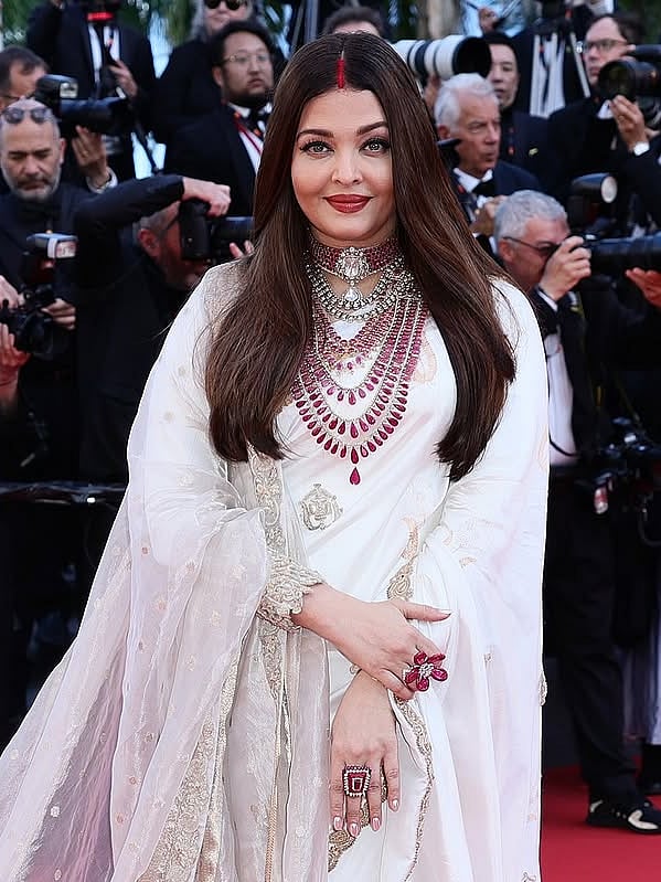 ഇത്തവണ കാൻ റെഡ് കാർപ്പറ്റിൽ നെറുകയിൽ സിന്ദൂരമണിഞ്ഞാണ് ഐശ്വര്യ എത്തിയത്.