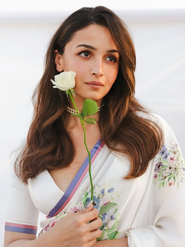 വെള്ള നിറത്തിലെ ഫ്ലോറൽ പ്രിന്റ് സാരിയിലാണ് ആലിയ ഇത്തവണ തിളങ്ങിയിരിക്കുന്നത്.