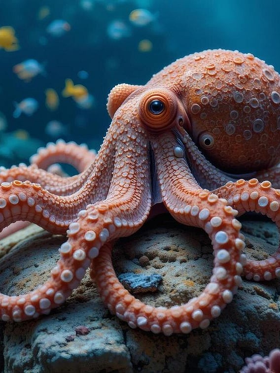 നാഡീസംബന്ധമായ തകരാറുകൾ മൂലമോ, ശത്രുക്കളിൽ നിന്നും രക്ഷനേടാനോ, ശരീരത്തിലെ അണുബാധ തടയാനോ നീരാളികൾ സ്വന്തം കൈകൾ ഭക്ഷിക്കാറുണ്ട്. വുൽഗാരിസ് ഇനത്തിൽപ്പെട്ട നീരാളികളിലാണ് ഇത് കൂടുതലായും കാണപ്പെടുന്നത്.
