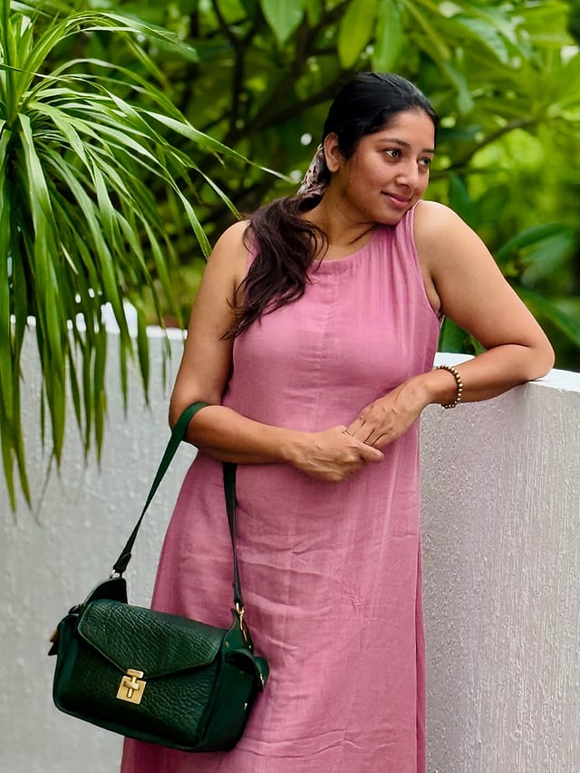 ലൈറ്റ് പിങ്ക് നിറത്തിലുള്ള കോട്ടൺ ഫ്രോക്കാണ് താരം ധരിച്ചിരിക്കുന്നത്