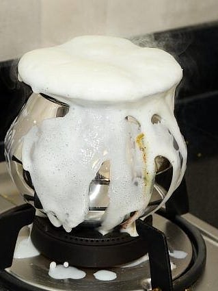 പാല് കവിഞ്ഞൊഴുകാതിരിക്കാൻ പാത്രത്തിനു കുറുകെ മരം കൊണ്ടുള്ള തവി വയ്ക്കുക.പാല് തിളച്ച് മുകളിലേക്ക് വരുമ്പോൾ അത് ഈ തവിയില് തട്ടി താഴേയ്ക്ക് തന്നെ തിരിച്ചു പോകും.
