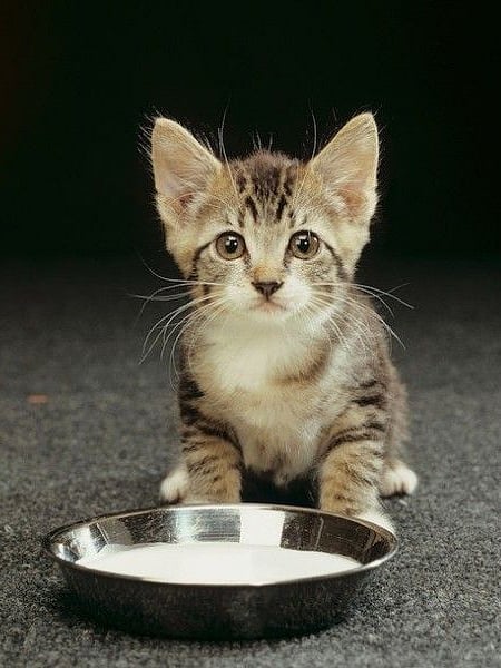 പൂച്ചകുട്ടികൾക്ക് പാല് കൊടുക്കാമെങ്കിലും, അമ്മയുടെ പാല് നൽകുന്നതാണ് നല്ലത്. എന്തെങ്കിലും അത്യാവശ്യ ഘട്ടങ്ങൾ വന്നാൽ പൂച്ചകുട്ടികൾക്കായി പ്രത്യേകം തയ്യാറാക്കിയ പാല് കൊടുക്കാവുന്നതാണ്.