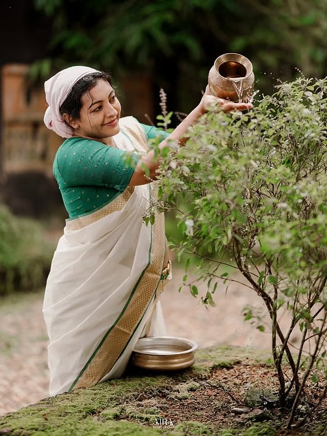 നിറവയറിൽ കേരള സാരിയുടുത്ത് അതിമനോഹരിയാണ് ദുർഗ ചിത്രങ്ങളിൽ.