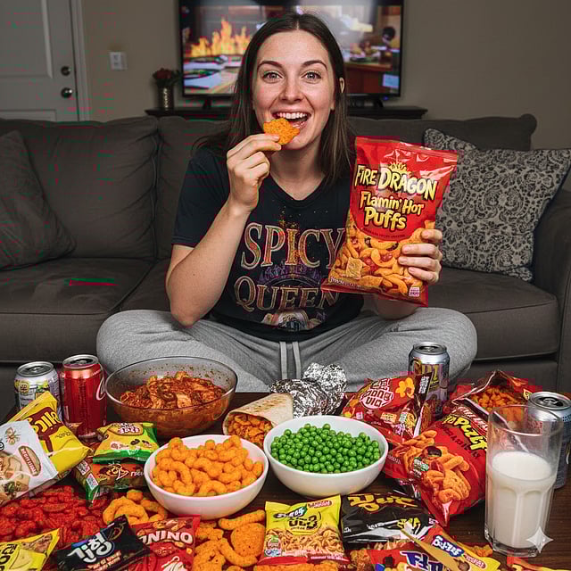 നല്ല സ്പൈസി സ്നാക്കുകളിൽ അടങ്ങിയിരിക്കുന്ന കൊഴുപ്പ് മുഖത്ത് തടിപ്പ് ഉണ്ടാക്കുകയും പിന്നീടിത് ചൊറിച്ചിലിനും മുറിവുകൾ ഉണ്ടാകുന്നതിനും കാരണമാവുകയും ചെയ്യും.