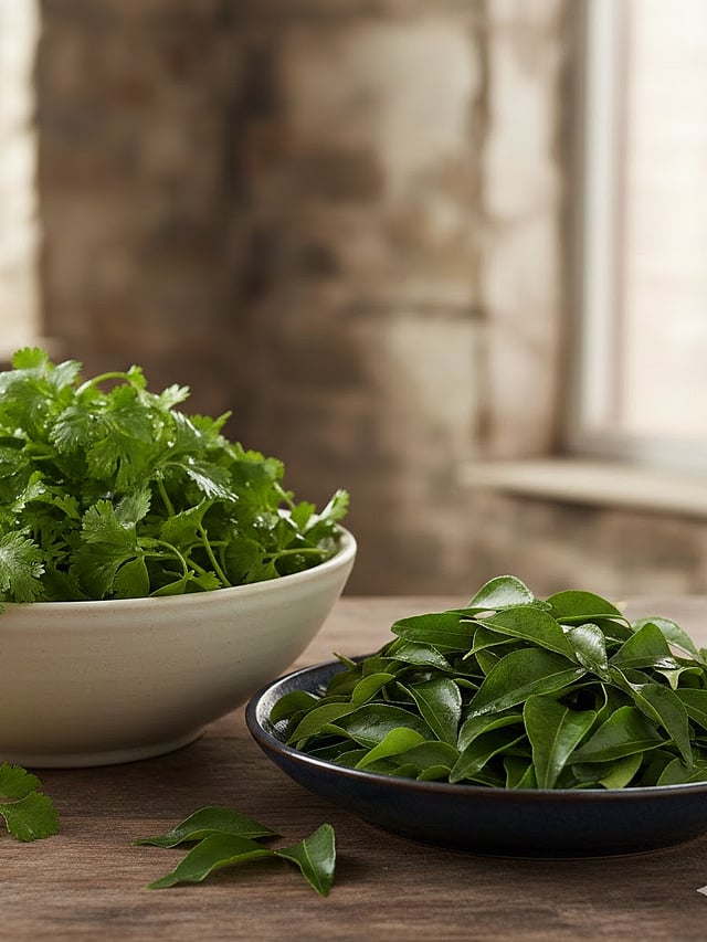കറിവേപ്പിലയിലും മല്ലിയിലയിലും ധാരാളം ഗുണങ്ങൾ അടങ്ങിയിട്ടുണ്ടെങ്കിലും ഏറ്റവും കൂടുതൽ ഗുണങ്ങൾ ഉള്ളത് കറിവേപ്പിലയ്ക്ക് തന്നെയാണ്. കാരണം ചൂടിൽ പാകം ചെയ്തെടുക്കുമ്പോഴും ഇതിന്റെ ഗുണങ്ങൾ നഷ്ടപ്പെടുകയില്ല.
