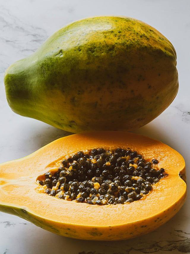 വിറ്റാമിനുകളായ സി, ബി, ഇ, പൊട്ടാസ്യം, ഫൈബർ, മഗ്നീഷ്യം തുടങ്ങിയവ അടങ്ങിയതാണ് പപ്പായ.