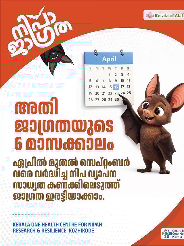 ഏപ്രിൽ മുതൽ സെപ്റ്റംബർ വരെ നിപ വ്യാപനത്തിന് സാധ്യതയുള്ള സമയമായതിനാൽ ജാഗ്രത നിർദേശവുമായി ആരോഗ്യ വകുപ്പ്.