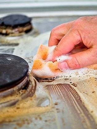 ഗ്യാസ് സ്റ്റൗവിൽ അൽപം വിനാഗിരി സ്പ്രേ ചെയ്തതിന് ശേഷം 5 മിനിറ്റ് അങ്ങനെ തന്നെ വെച്ചിരിക്കാം. അതുകഴിഞ്ഞ് സ്പോഞ്ച് ഉപയോഗിച്ച് കറയുള്ള ഭാഗം നന്നായി ഉരച്ച് കഴുകിയാൽ മതി. ഗ്യാസ് സ്റ്റൗ എളുപ്പം വൃത്തിയായി കിട്ടും.