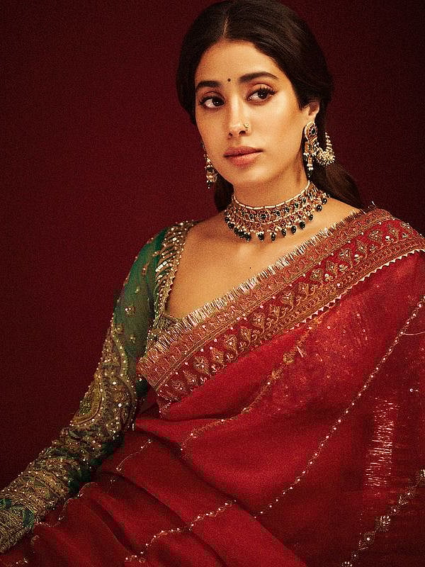 കല്ലുകൾ പതിപ്പിച്ച ആഭരണങ്ങളാണ് ജാൻവി ലുക്കിനായി തെരഞ്ഞെടുത്തത്.