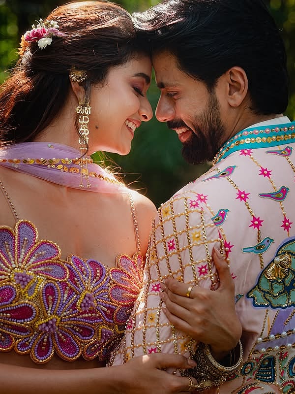 തമിഴിൽ വധു എന്നർഥം വരുന്ന ‘മനമകൾ’ എന്നെഴുതിയ കമ്മലുകളും വർണാഭമായ വസ്ത്രവുമാണ് കീർത്തി ധരിച്ചിരുന്നത്.