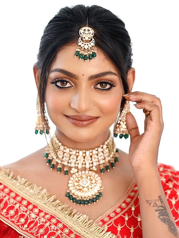 പച്ചയും വെള്ളയും നിറത്തിലെ കല്ലുകൾ പതിപ്പിച്ച ആഭരണങ്ങളും മൊണാലിസ ലുക്കിനായി തിരഞ്ഞെടുത്തു.