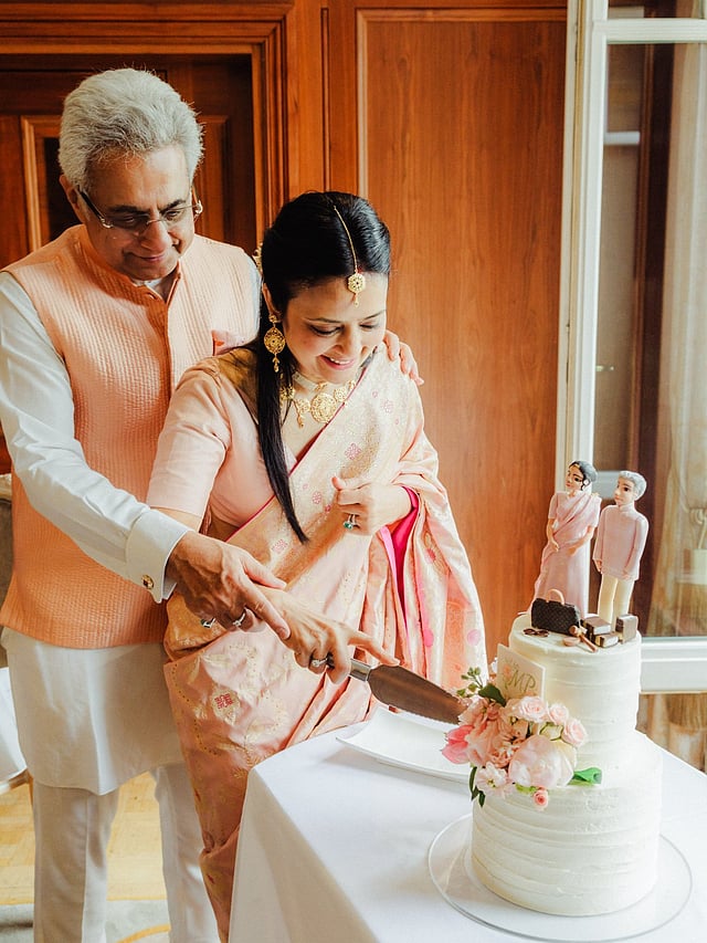 ഇരുവരും ചേര്ന്ന് വിവാഹത്തിന്റെ ഭാഗമായുള്ള കേക്ക് മുറിക്കുന്ന ചിത്രമാണ് മഹുവ പങ്കുവെച്ചത്.