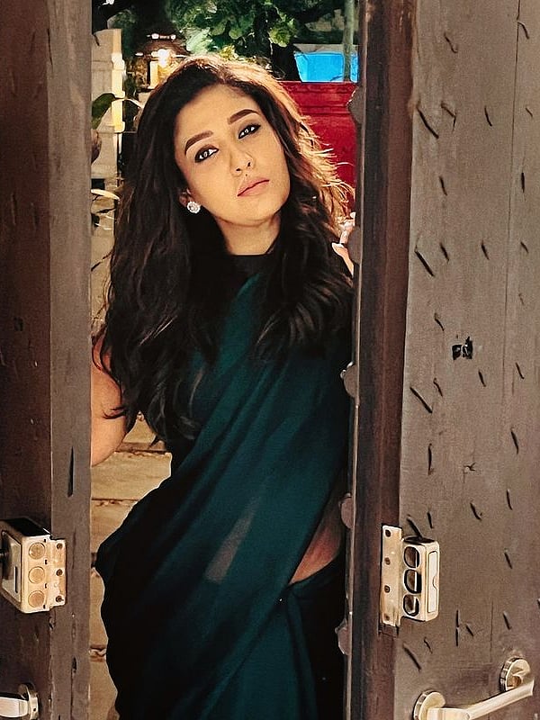കടും പച്ച നിറത്തിലെ കോട്ടൺ സാരിയിലാണ് ഇത്തവണ നയൻ തിളങ്ങിയിരിക്കുന്നത്.