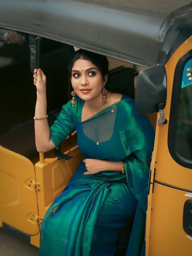 മയിൽപീലി നിറത്തിലുള്ള സാരിയിലുള്ള ചിത്രങ്ങളാണ് താരം സോഷ്യൽ മീഡിയയിൽ പങ്കുവെച്ചിരിക്കുന്നത്