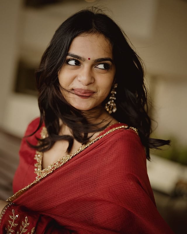 ചുവപ്പ് നിറത്തിലുള്ള ചുരിദാറിലാണ് താരം ചിത്രങ്ങളിൽ