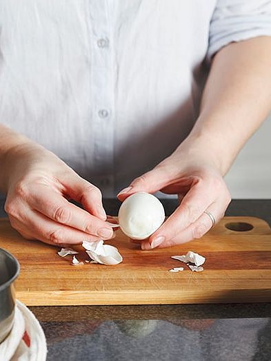 പുഴുങ്ങിയ മുട്ടയുടെ തൊലി കളയുമ്പോള്, അത് വെള്ളയുമായി ഒട്ടിപ്പിടിക്കുന്നത് സാധാരണമാണ്.