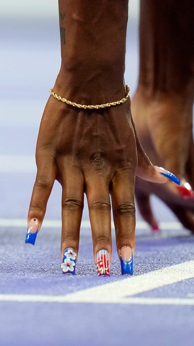 യുഎസ് കായിക താരം ഷക്കാരി റിച്ചഡ്സണിന്റെ കൈയിലെ നെയില് ആര്ട്ട്
