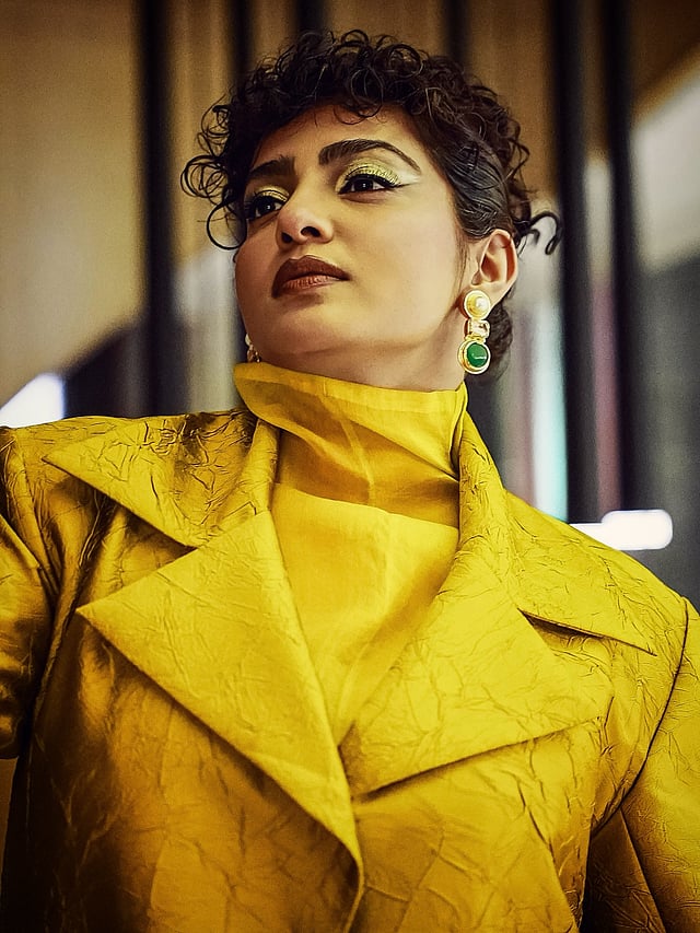 ചുരുണ്ട മുടി പ്രത്യേക സ്റ്റൈലില് സെറ്റ് ചെയ്തിരിക്കുകയാണ്.
