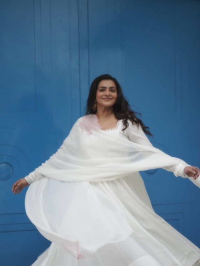 വെള്ള ചുരിദാറിലാണ് താരം പ്രത്യക്ഷപ്പെടുന്നത്.