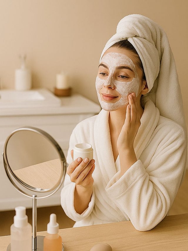 2 ടേബിൾ സ്പൂൺ അരി പൊടി, 2 ടേബിൾസ്പൂൺ മുൾട്ടാനി മിട്ടി, റോസ് വാട്ടർ എന്നിവ ചേർത്ത് പേസ്റ്റ് രൂപത്തിലാക്കുക. 5-10 മിനിറ്റ് നേരം വച്ച ശേഷം കഴുകിക്കളയുക.