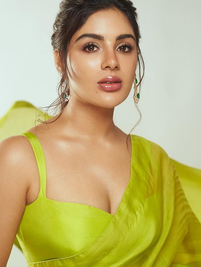 പച്ച സാരിയില് അതീവ സുന്ദരിയായാണ് സംയുക്ത എത്തുന്നത്.