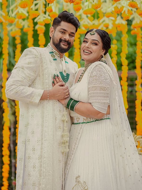വെള്ള നിറത്തിലെ ഡിസൈനർ കുർത്തിയിൽ വരനും തിളങ്ങി.
