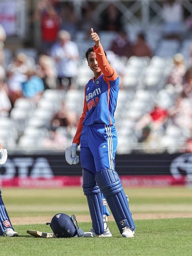 ഇംഗ്ലണ്ടിനെതിരായ പോരാട്ടത്തില് 62 പന്തില് 3 സിക്സും 15 ഫോറും സഹിതം സ്മൃതി 112 റണ്സ് അടിച്ചെടുത്തു.