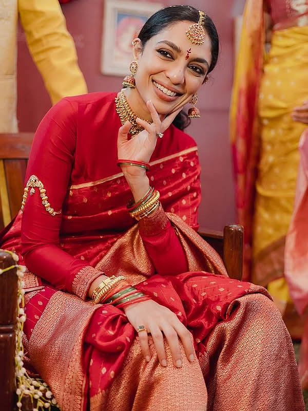 ചുവപ്പ് നിറത്തിലെ സാരിയിലാണ് ശോഭിതയെ ചടങ്ങിൽ കാണാൻ കഴിയുക.