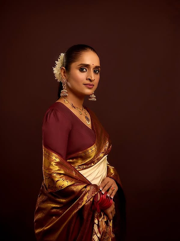വെള്ളയും മെറൂണും നിറത്തിലെ സാരിയിലാണ് സുരഭിയെ കാണാനാവുക.