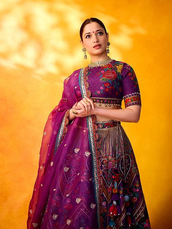 വയലറ്റ് നിറത്തിലെ ലെഹങ്കയിലുള്ള തമന്നയുടെ പുതിയ ഫോട്ടോകളാണ് സോഷ്യൽ മീഡിയയിലിപ്പോൾ ശ്രദ്ധ നേടുന്നത്.