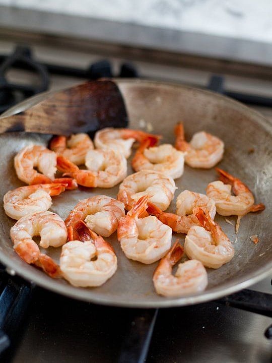 ഫ്രോസൺ ചെമ്മീൻ ഉപയോഗിക്കുകയാണെങ്കിൽ പാകം ചെയ്യുന്നതിന് മുമ്പ് സാധാരണ താപനിലയിലെത്തിയെന്ന് ഉറപ്പാക്കണം.