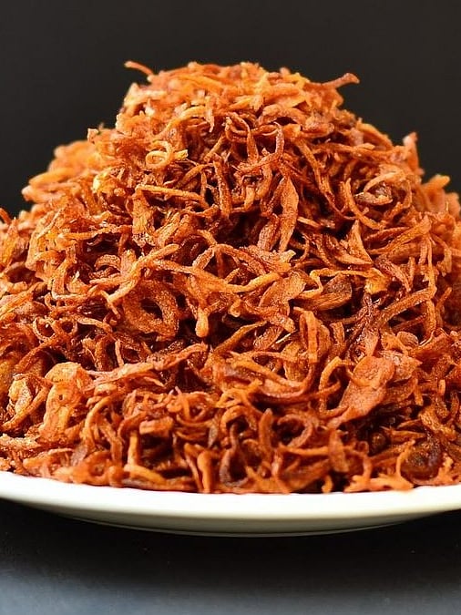 പല ഇന്ത്യന് കറികളിലും ഇങ്ങനെ പൊരിച്ചെടുത്ത ഉള്ളി ചേർക്കുന്നത് സാധാരണമാണ്.