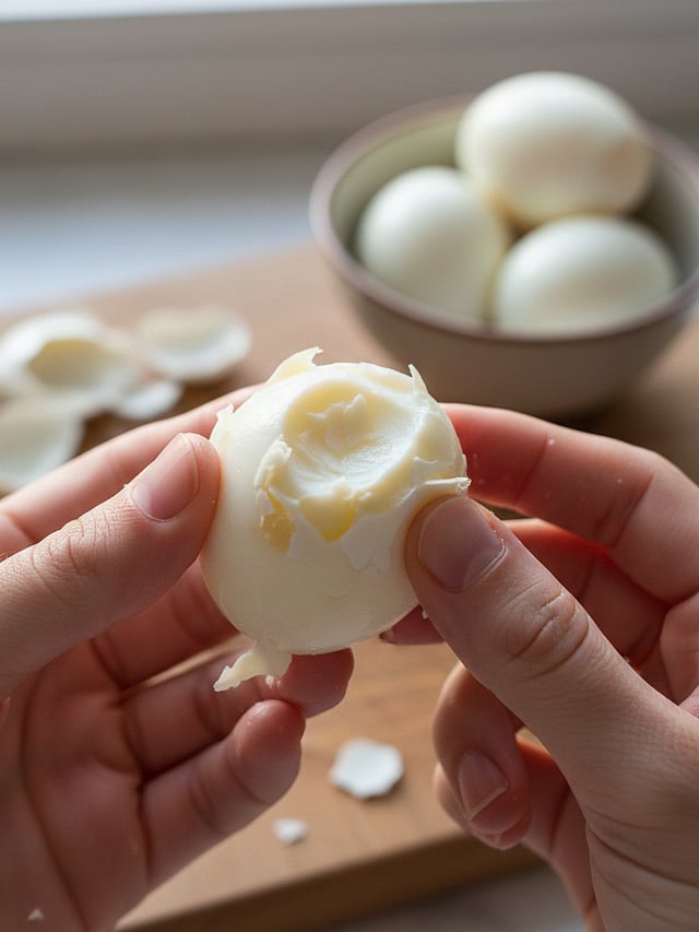 പുഴുങ്ങിയ മുട്ടയുടെ തൊലി കളയുമ്പോള്, അത് വെള്ളയുമായി ഒട്ടിപ്പിടിക്കുന്നത് സാധാരണമാണ്.
