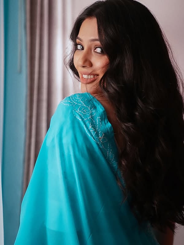 നീല നിറത്തിലെ സാരിയിലാണ് താരം ഇത്തവണ തിളങ്ങിയിരിക്കുന്നത്.
