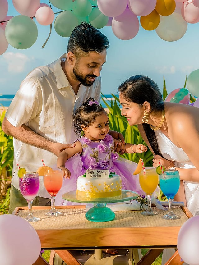 ലാവെന്റര് നിറത്തിലുള്ള കുട്ടി ഉടുപ്പാണ് പിറന്നാളുകാരി അണിഞ്ഞിരുന്നത്.