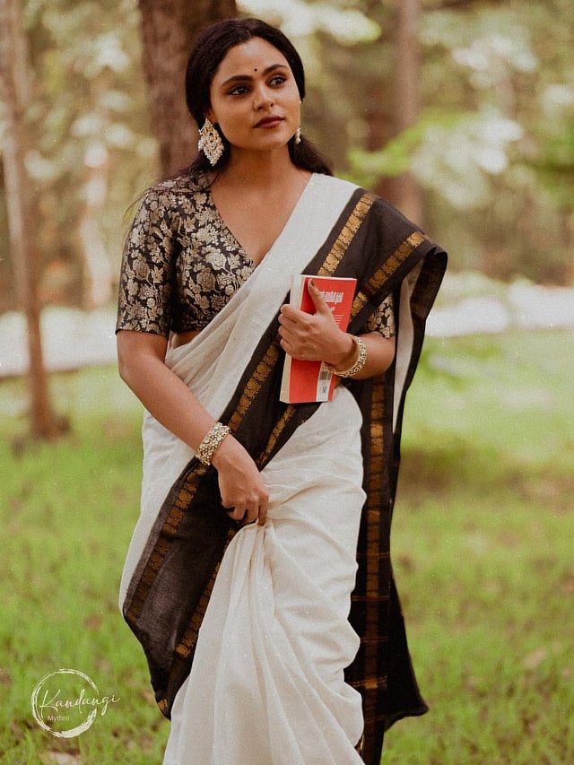 വെള്ള സാരിയില് കറുത്ത ബോര്ഡറിലുള്ള സാരിയുടുത്താണ് താരം എത്തുന്നത്.