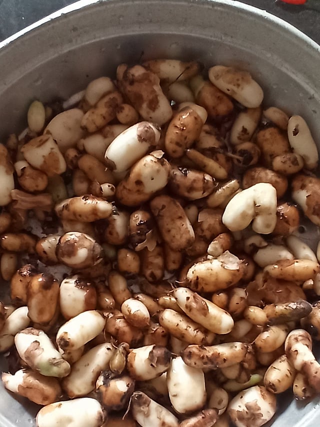കൂർക്ക വൃത്തിയാക്കുമ്പോൾ കറ കൈകളിൽ പറ്റിപ്പിടിക്കാതിരിക്കാൻ വൃത്തിയാക്കുന്നതിന് മുൻപ് ഒരു ഗ്ലൗസോ അല്ലെങ്കിൽ കവറോ കൈകളിൽ ധരിക്കുന്നത് ഉചിതമാണ്.