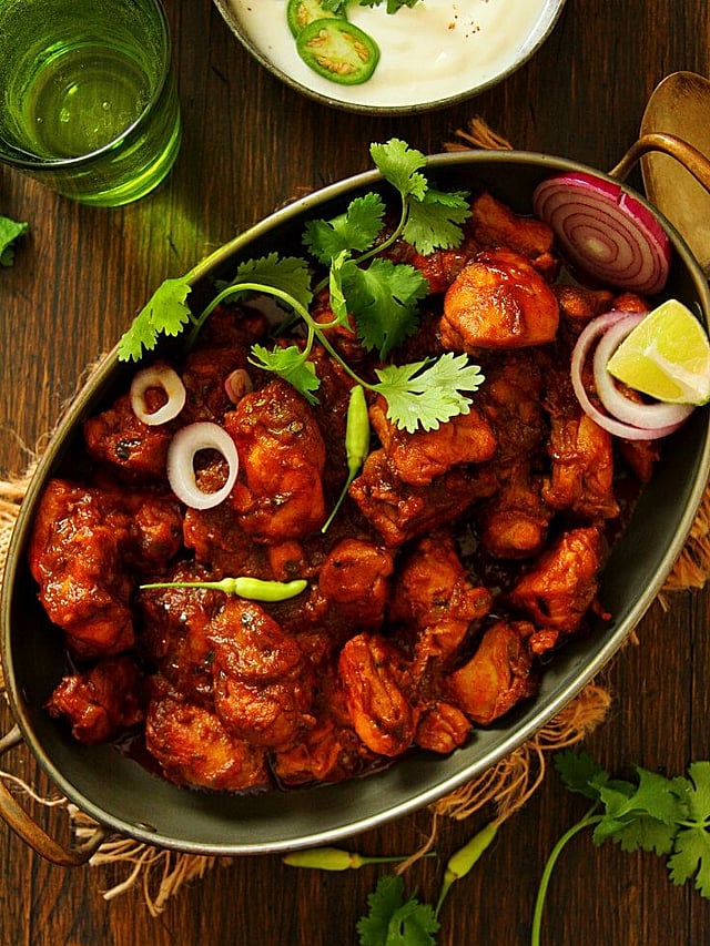 ചിക്കന്റെ പുറംഭാഗം നന്നായി മൊരിഞ്ഞ് ഇരുണ്ട ചുവപ്പ് നിറമാകുമ്പോൾ എണ്ണയിൽ നിന്ന് കോരി മാറ്റാം.