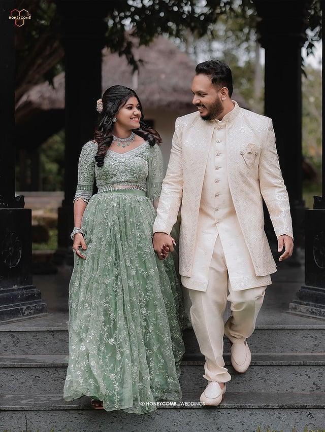 പേസ്റ്റല് ഗ്രീന് നിറത്തിലുള്ള ലെഹങ്കയായിരുന്നു വര്ഷയുടെ വേഷം.
